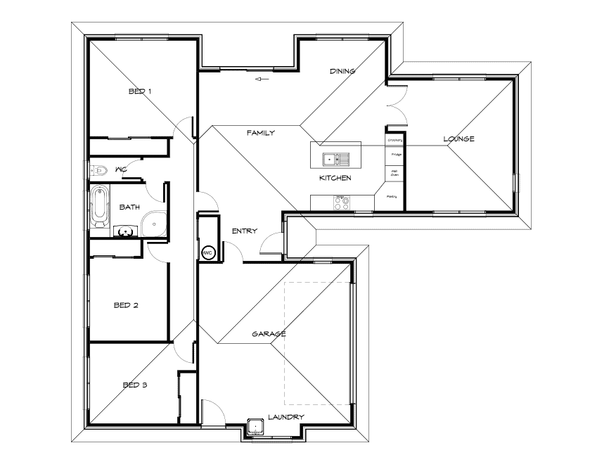 Surprisingly spacious 3 Bedroom plan with a modern L-Shaped kitchen with open plan living.