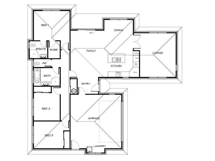 Surprisingly spacious 3 Bedroom plan with a modern L-Shaped kitchen with open plan living.