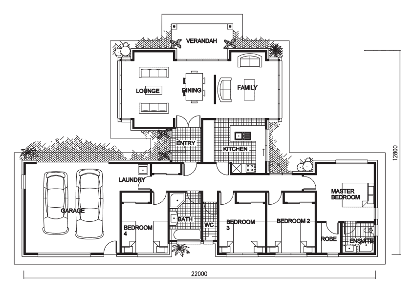 The classic style 193sqm Devonport plan features four bedrooms and two bathrooms, master with ensuite and walk in wardrobe. Floorplan highlights include open views from the kitchen and walk through laundry to the garage.