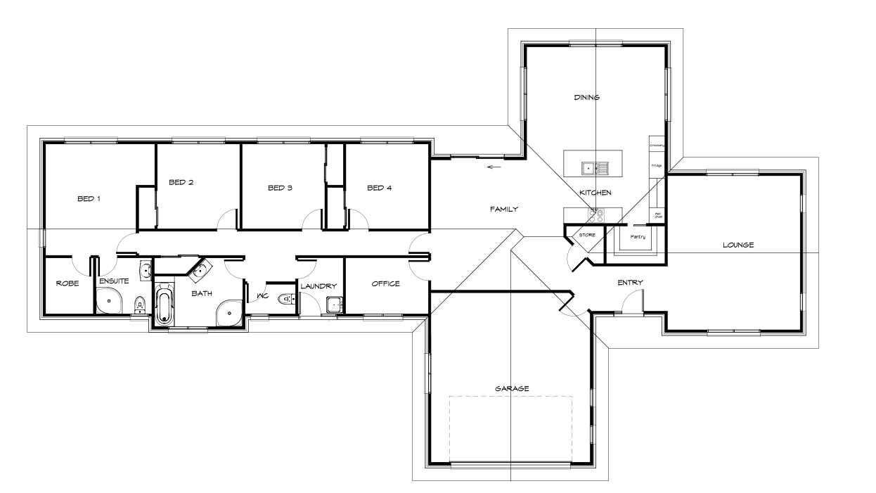 Very simple, practical layout. The centred main bathroom gives great flow to bedrooms plus a separate lounge down the opposite end of the house for when you’re entertaining.